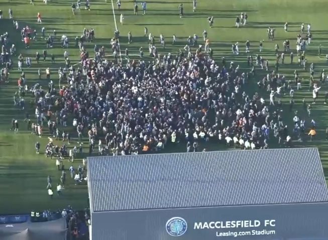 當(dāng)終場(chǎng)哨響,奇跡正式誕生時(shí),激動(dòng)的麥克爾斯菲爾德球迷瘋狂沖進(jìn)場(chǎng)內(nèi),與球員一起激動(dòng)擁抱慶祝。