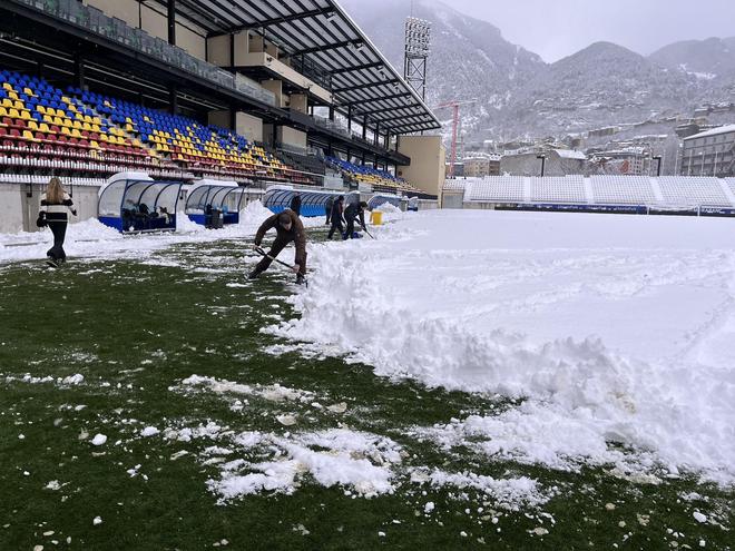 西乙第21輪,安道爾FC原定在主場(chǎng)迎戰(zhàn)萊昂文體,但由于球場(chǎng)被厚達(dá)28厘米的積雪覆蓋,比賽無(wú)法如期進(jìn)行。