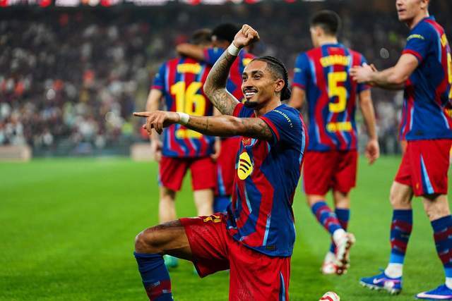 1月12日凌晨,西班牙超級(jí)杯決賽打響,皇馬和巴薩再次碰面。此役拉菲尼亞梅開二度,威尼修斯一條龍破門,姆巴佩替補(bǔ)登場(chǎng)造紅牌,最終巴薩3-2擊敗皇馬實(shí)現(xiàn)衛(wèi)冕。