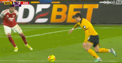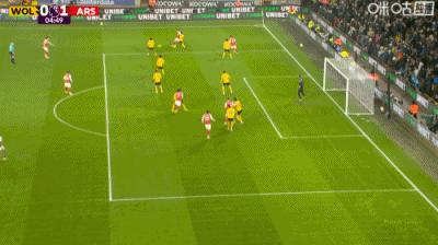 第5分鐘,薩卡禁區(qū)插上頭球破門,阿森納1-0領(lǐng)先狼隊