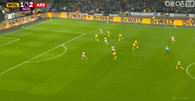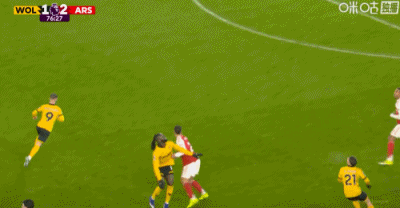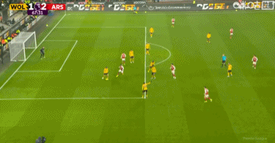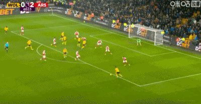 第61分鐘,布埃諾禁區(qū)右路兜射遠(yuǎn)角破門,阿森納2-1狼隊