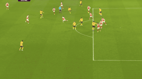 開(kāi)場(chǎng)只有5分鐘,賴斯送出45度傳中,薩卡頭球破門(mén),槍手取得夢(mèng)幻開(kāi)局。