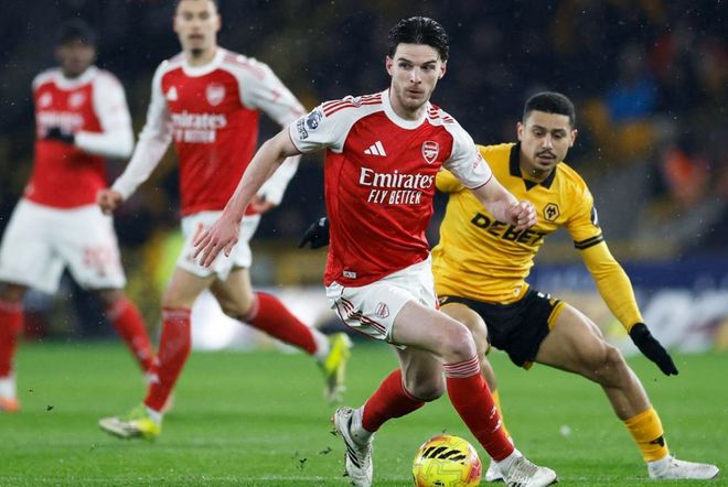 英超第31輪迎來一場比賽,阿森納做客挑戰(zhàn)狼隊。上半場,賴斯助攻薩卡頭球破門,馬杜埃凱射門被撲出,馬丁內(nèi)利頭球頂高。下半場,阿姆斯特朗遠射踢高,因卡皮耶進球擴大比分,布埃諾扳回一球,卡拉菲奧里補時烏龍球。最終,阿森納2-2戰(zhàn)平墊底隊狼隊,爆出大冷門。先賽一場的阿森納只領(lǐng)先曼城5分。