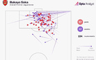 • 薩卡vs富勒姆數(shù)據(jù):6過人&關(guān)鍵傳球,被侵犯5次